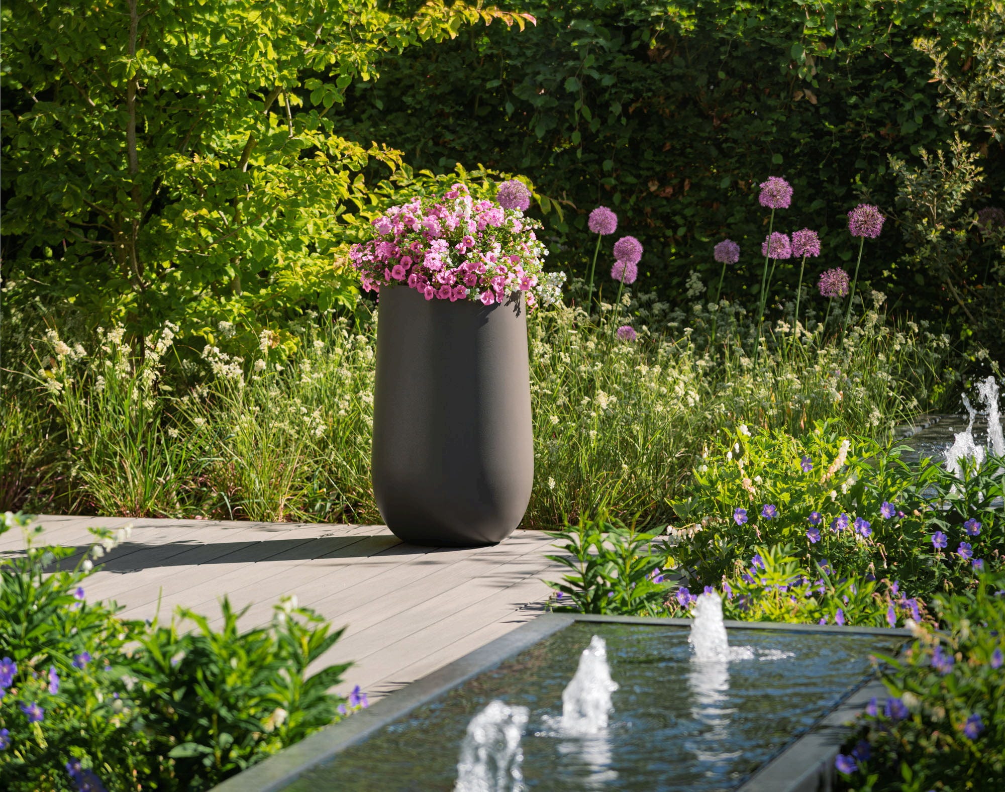 Het contrast tussen de zacht afgeronde vorm en de strakke rand geeft de Lora plantenbak zijn unieke uitstraling, waarmee je een bijzonder stijlvol accent zet in je tuin of op je terras. De bak brengt een moderne esthetiek naar je buitenruimte en onderstreept tegelijkertijd een rustige atmosfeer. Hierdoor is het de perfecte aanvulling op een natuurlijke omgeving, waar hij harmonieus in opgaat.
