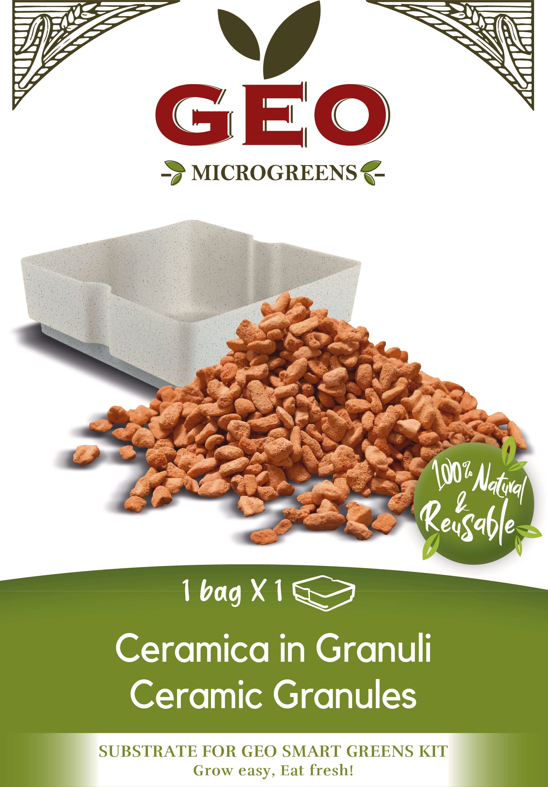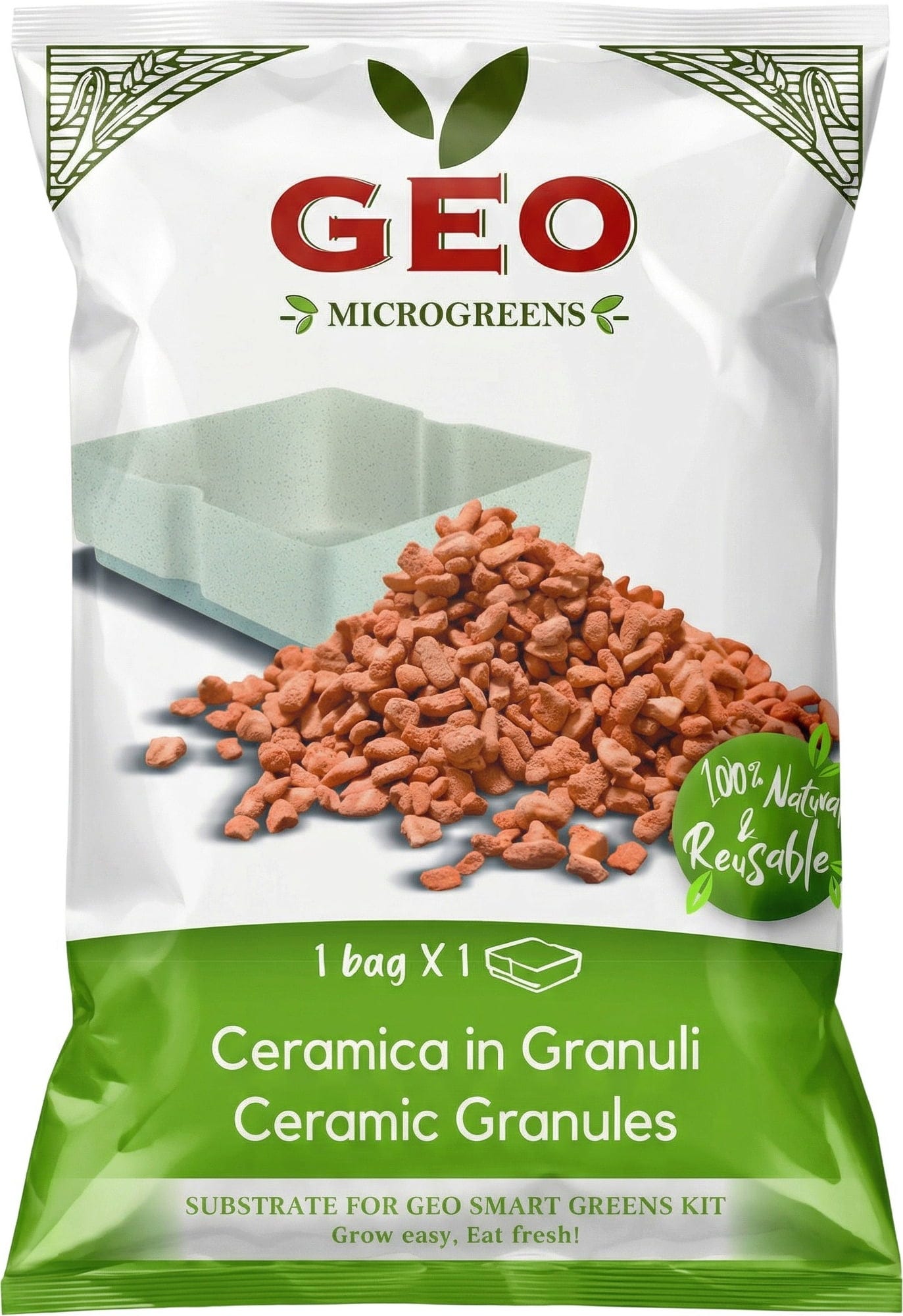 Optimaliseer je microgreens-kweek met het GEO Smart Greens kleikorrel-substraat. De natuurlijke korrels bieden de ideale structuur voor een perfecte beluchting van de wortels en een gelijkmatige afgifte van vocht.