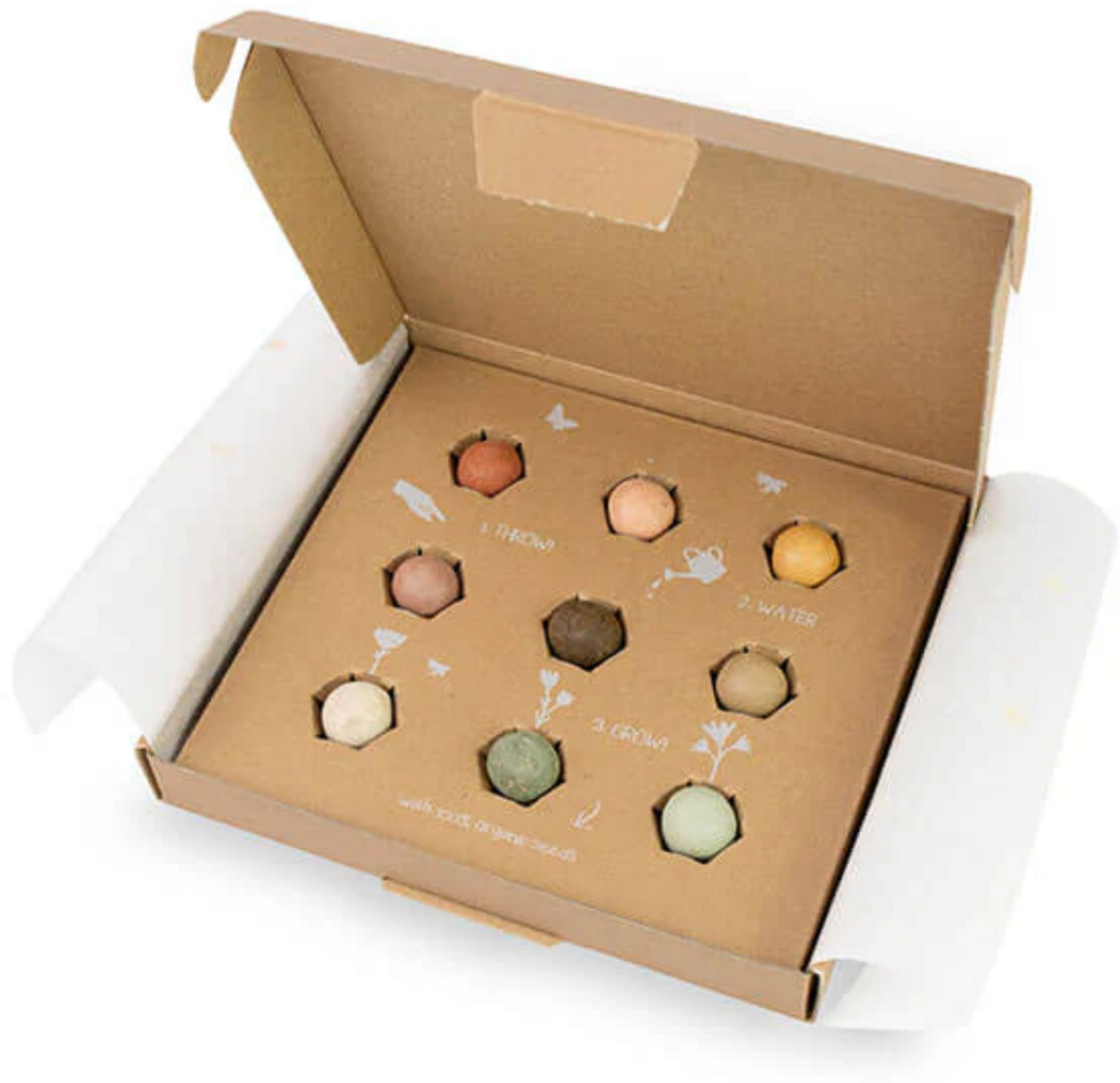 Laat je waardering blijken met een geschenkdoos die vreugde brengt en de natuur laat bloeien. De zaadbommen laten kleurrijke wilde bloemen groeien.