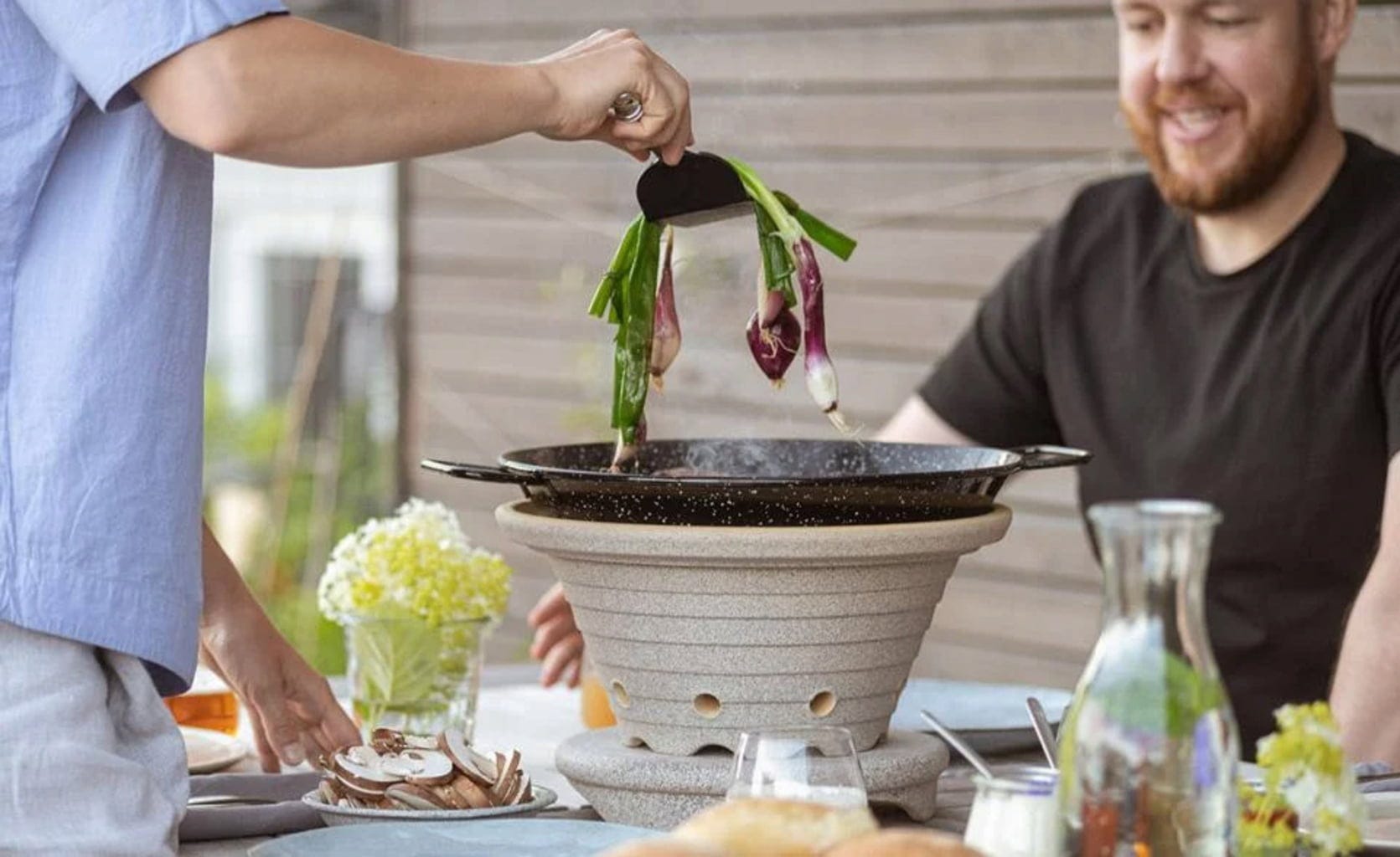 Barbecuegevoel op elk moment van het jaar! Geen probleem met de slimme Braadvuur-set van Denk Keramik. Perfect voor gezellige barbecue-avonden op het balkon, terras of in de tuin. Bijzonder gezellig: je kunt direct aan tafel grillen.