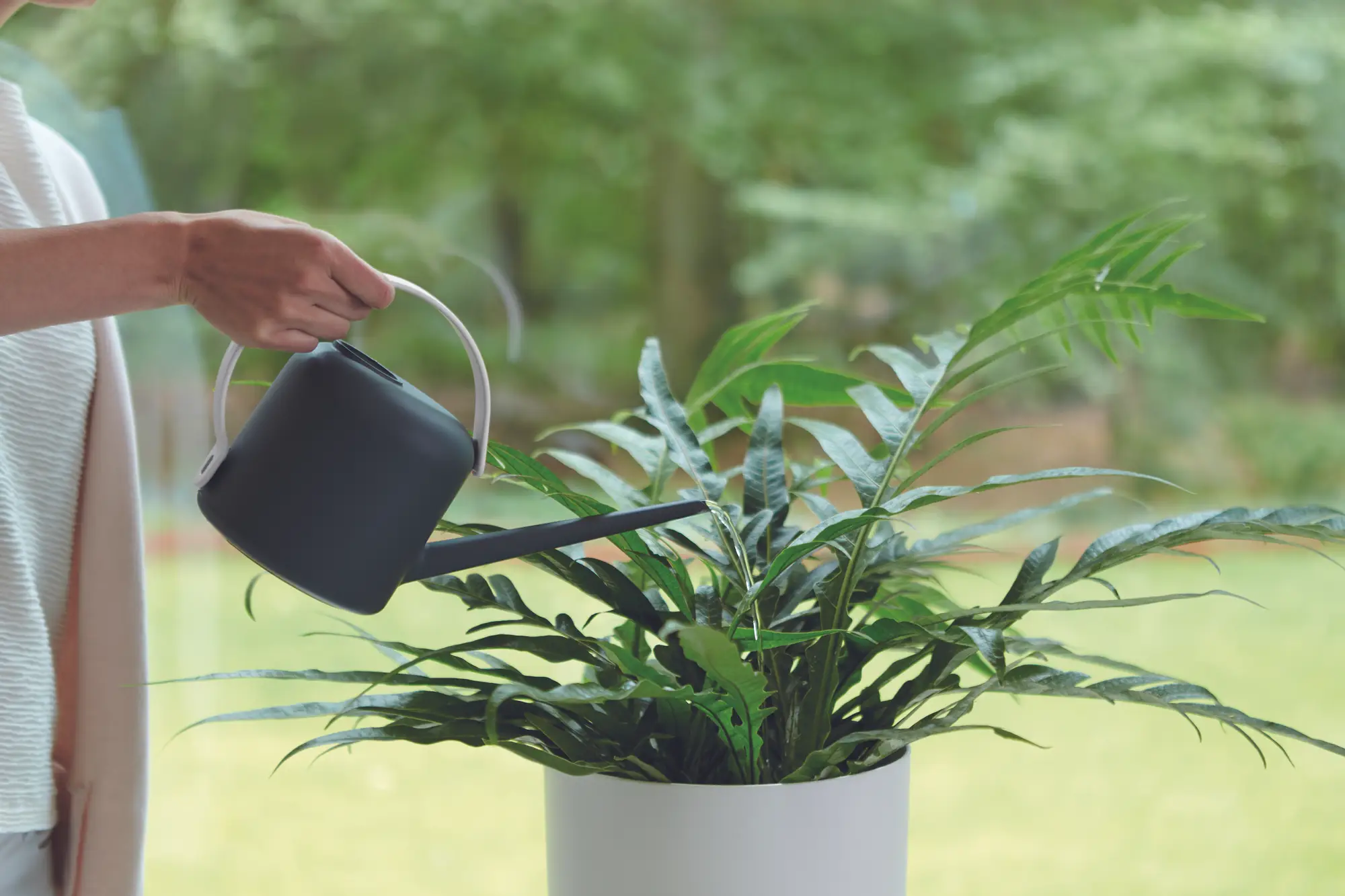 Deze stijlvolle gieter is bijna te mooi om in een kast te verdwijnen. Maar het ziet er niet alleen geweldig uit, het maakt ook indruk met zijn hoge functionaliteit. Het ronde handvat zorgt ervoor dat de gieter perfect in de hand ligt en optimaal kan worden geleid. De smalle tuit maakt een nauwkeurige dosering van het water mogelijk, zodat jouw planten altijd precies de juiste hoeveelheid water krijgen. Zo wordt water geven een plezier.