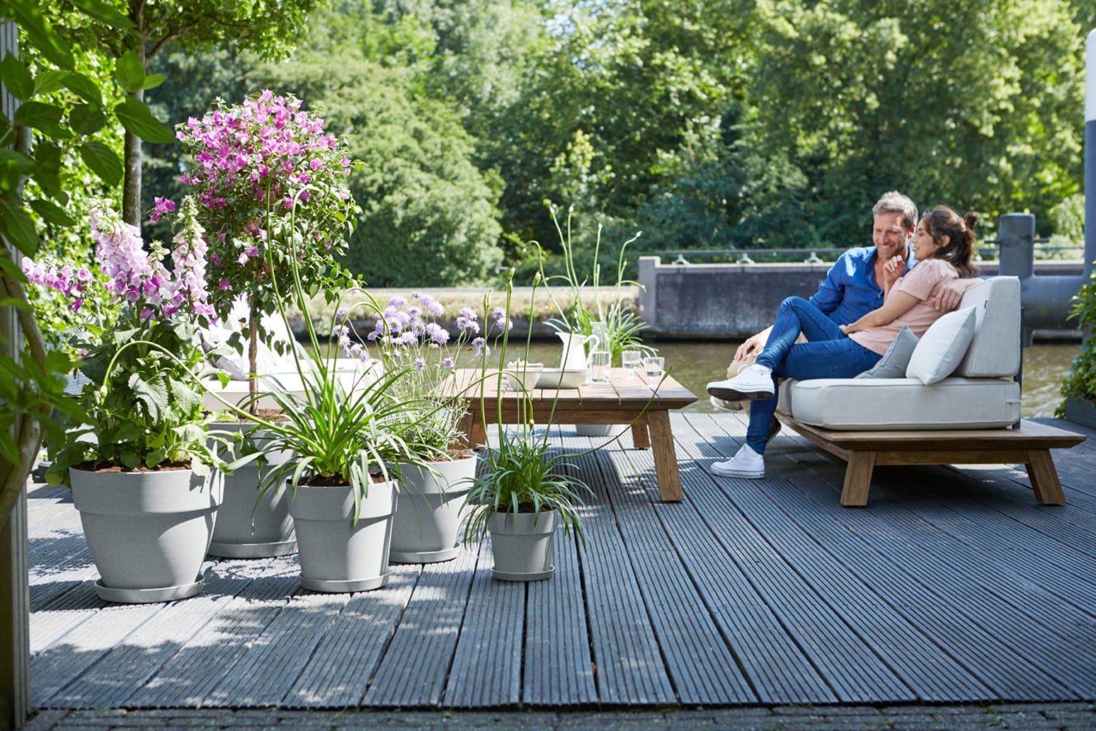 Deze mooie bloempot inspireert met zijn eenvoudig-moderne ontwerp en zijn grofkorrelige structuur, die het een extravagante toon geeft. Dit maakt het perfect om elegante accenten te zetten in de tuin, op het terras en op het balkon om planten een heel bijzondere setting te geven.
