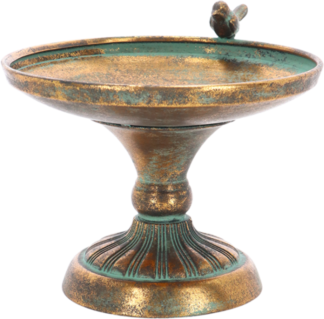 Verwen je gevederde gasten met dit compacte vogelbad van verouderd metaal. Het is gemaakt van robuust gietijzer, heeft een elegante antieke look en is tegelijkertijd weerbestendig. Het klassieke ontwerp past bijzonder goed bij landelijke of industriële tuinstijlen en zal vogels en tuinliefhebbers jarenlang plezieren.