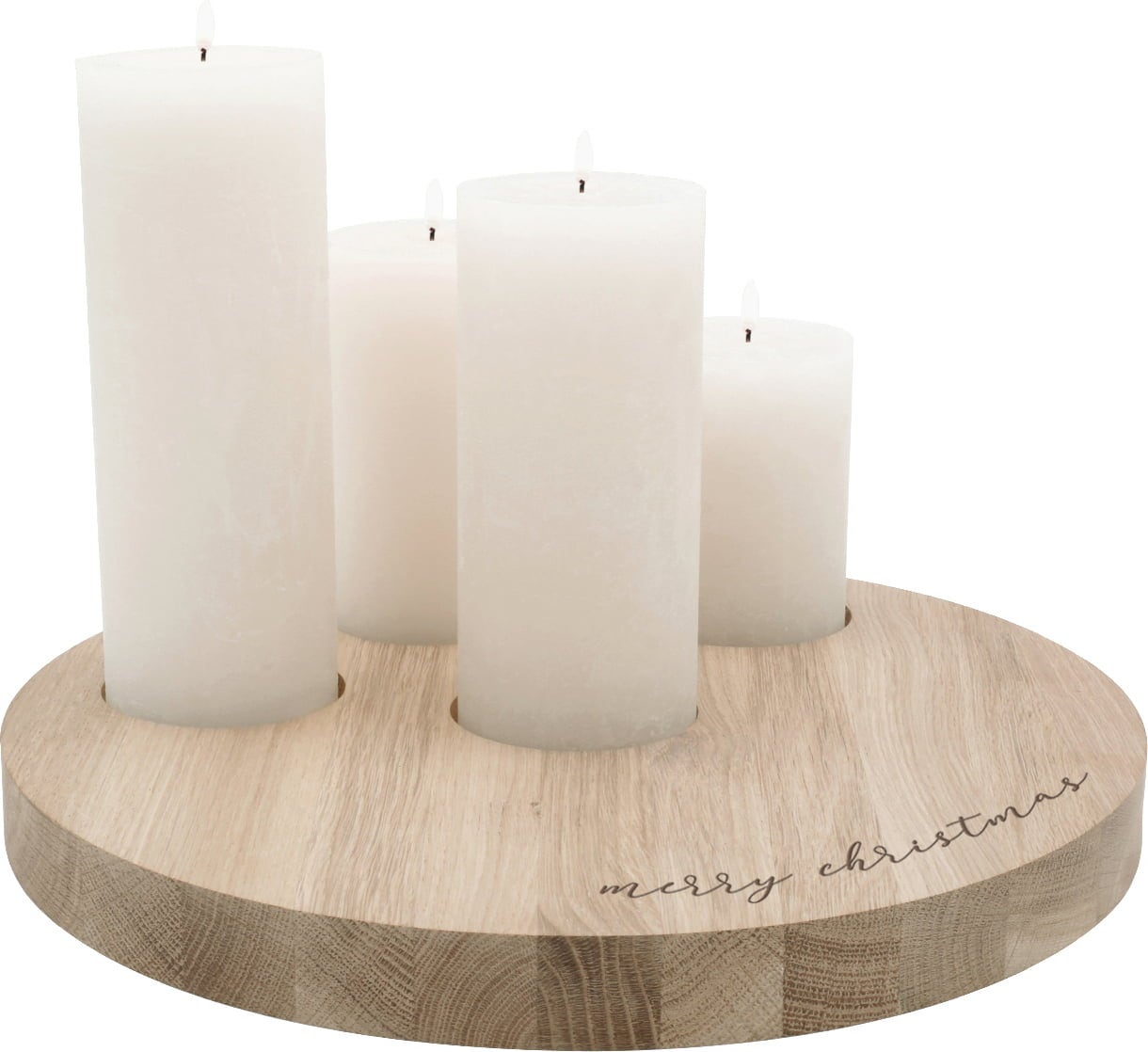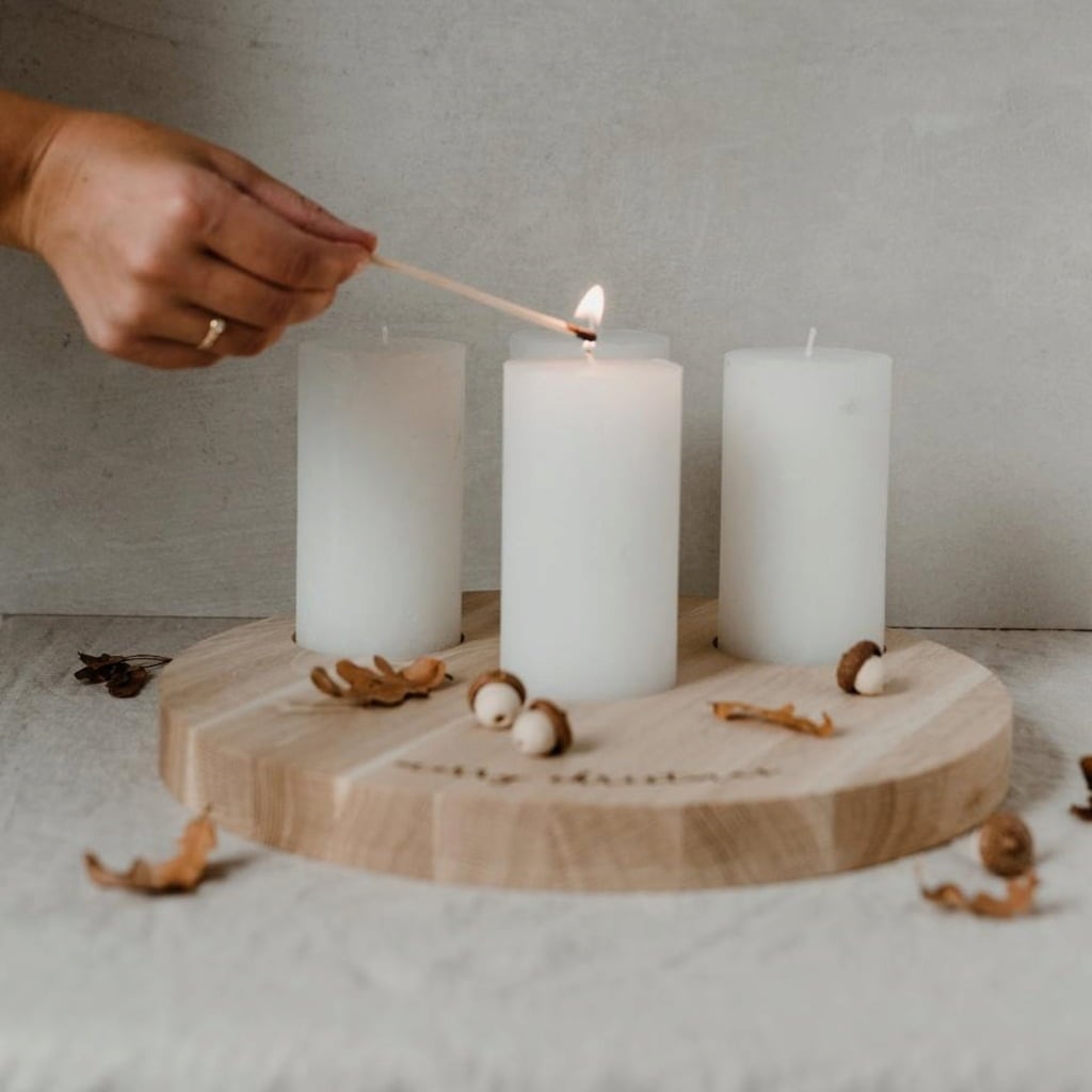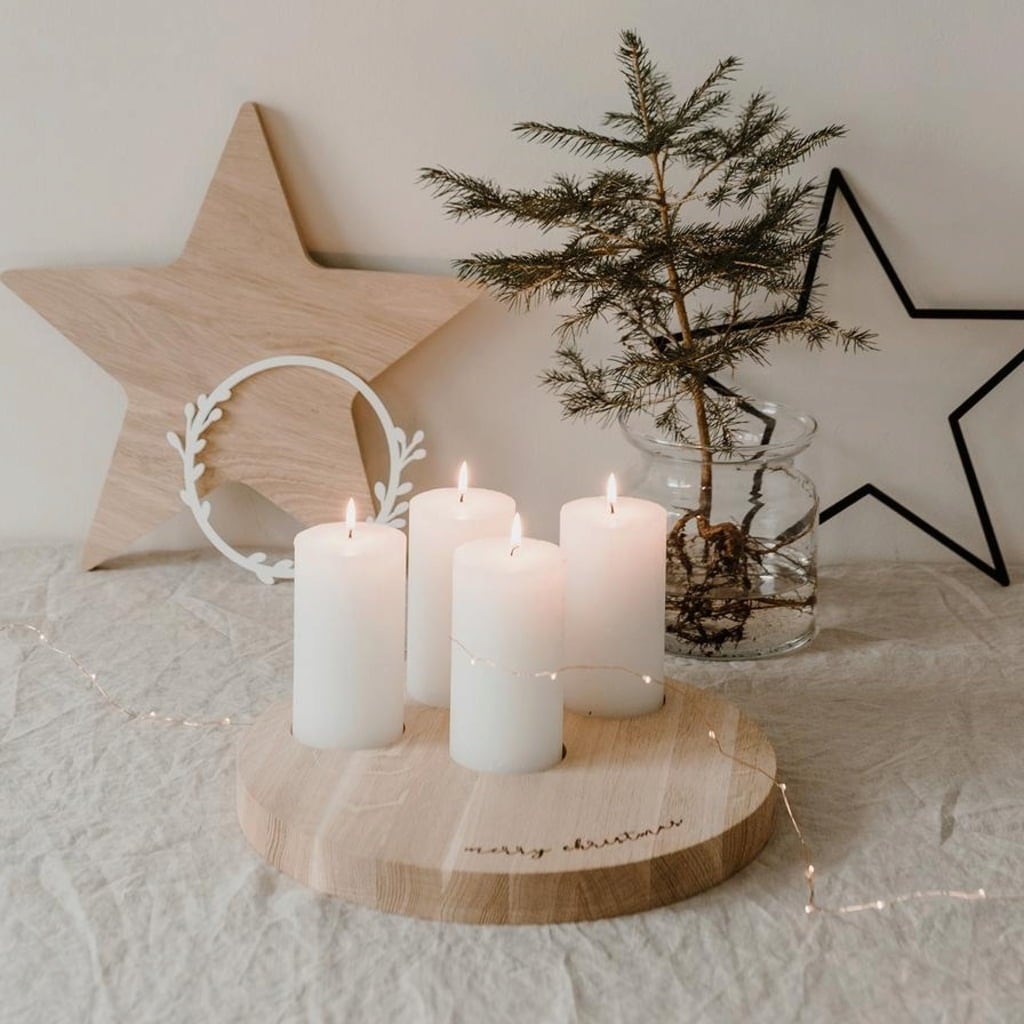 Dit kaarsenplateau is gemaakt van hoogwaardig eikenhout met veel aandacht voor detail. Het biedt ruimte voor vier blokkaarsen en nodigt je uit om je decoraties te personaliseren. Als blikvanger op het dressoir of als puristische versie van de adventskrans - een heel bijzonder favoriet stuk voor de mooiste tijd van het jaar.