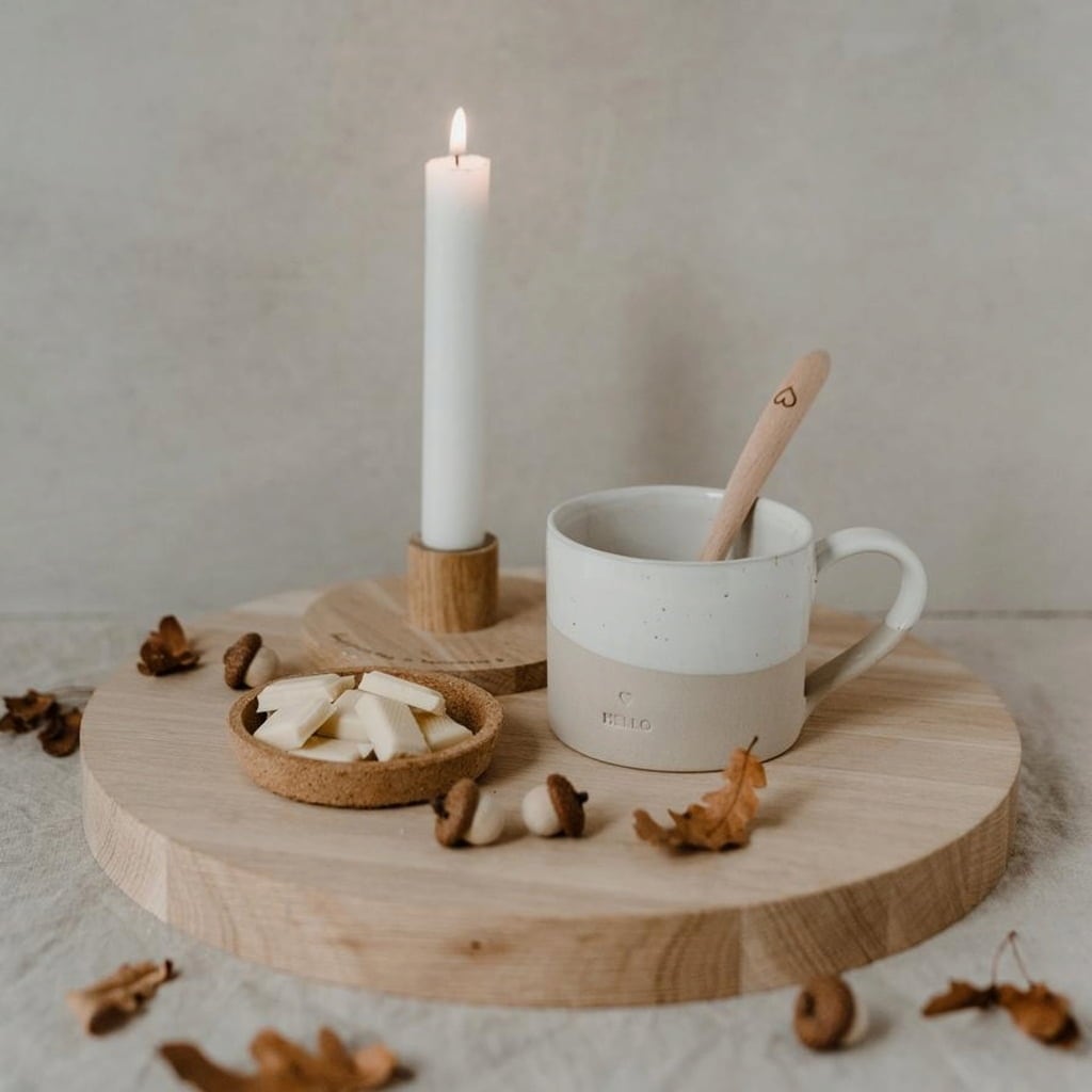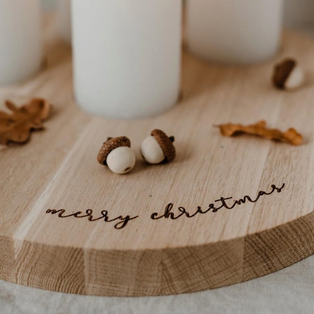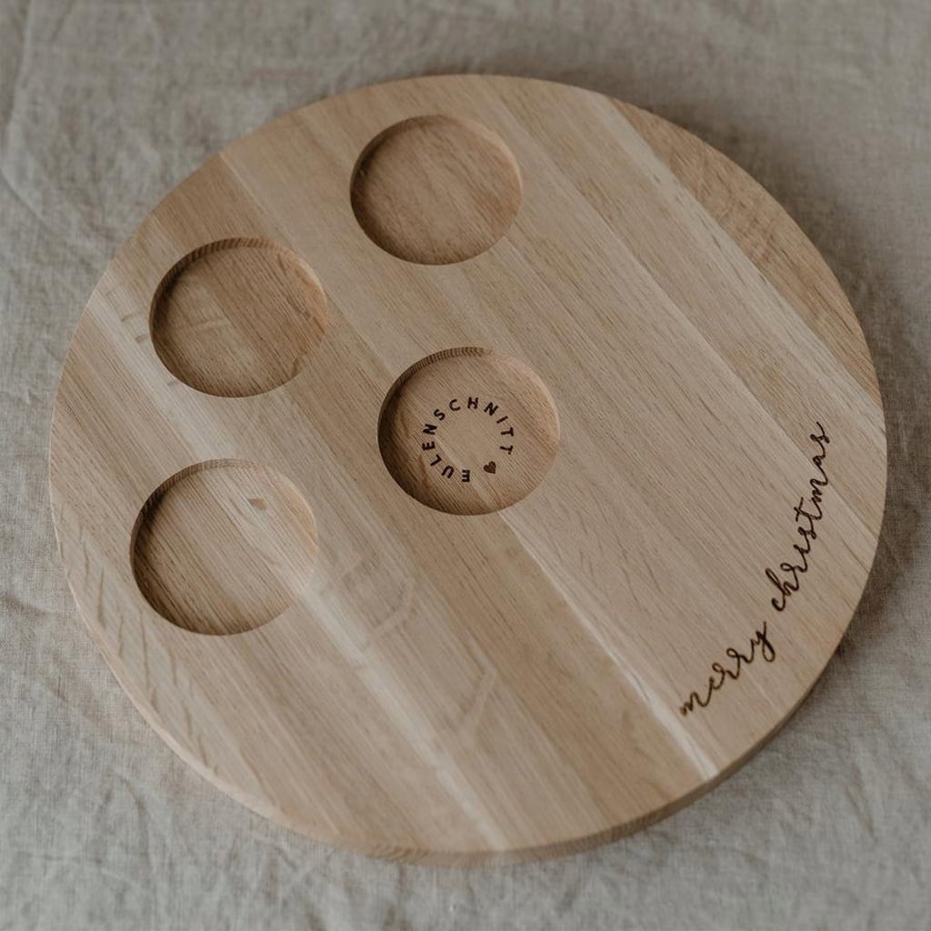 Dit kaarsenplateau is gemaakt van hoogwaardig eikenhout met veel aandacht voor detail. Het biedt ruimte voor vier blokkaarsen en nodigt je uit om je decoraties te personaliseren. Als blikvanger op het dressoir of als puristische versie van de adventskrans - een heel bijzonder favoriet stuk voor de mooiste tijd van het jaar.
