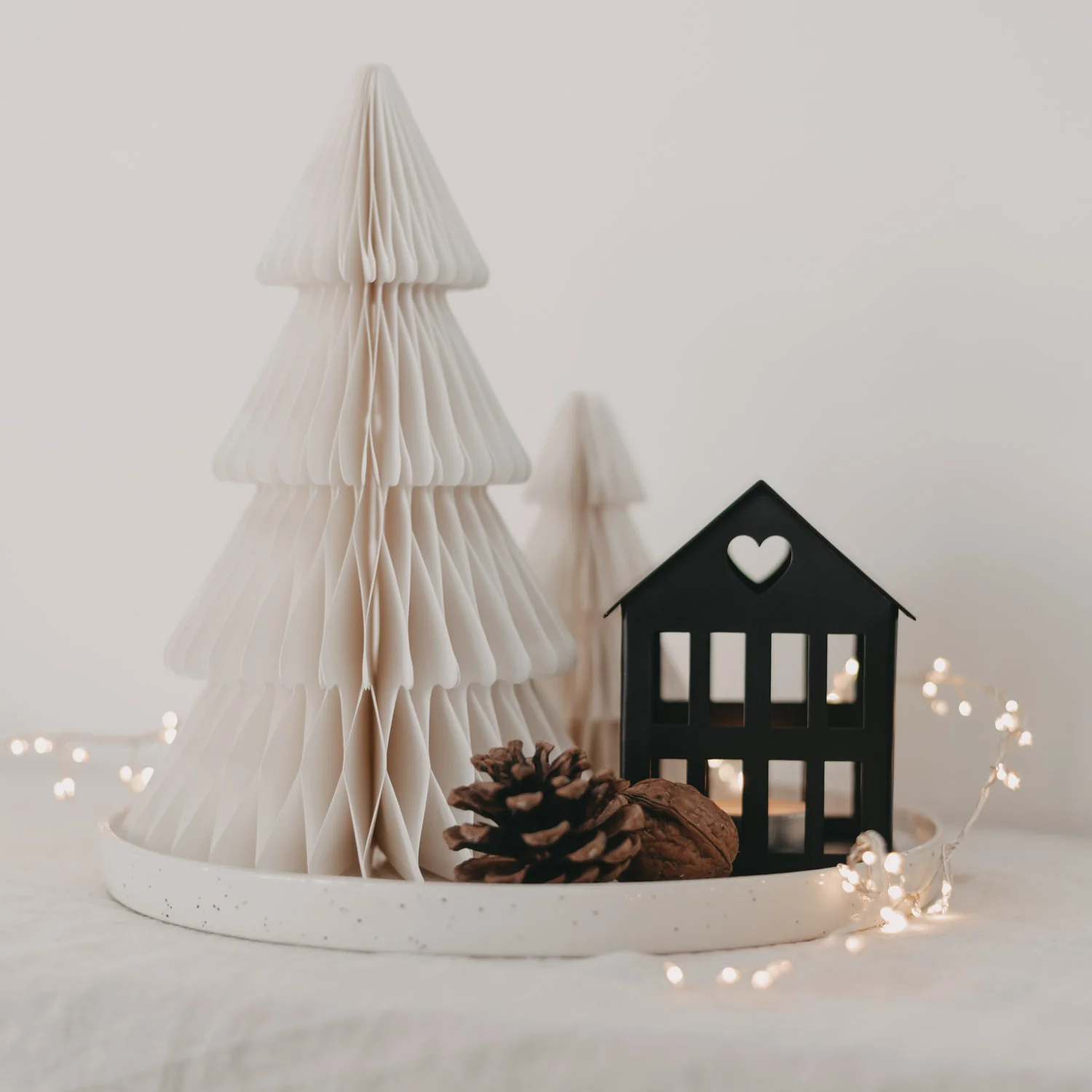 Eenvoudig ontwerp en tijdloze elegantie. Het huisje is gemaakt van metaal en nodigt uit tot individueel decoreren en versieren: of het nu met een waxinelichtje, kaars of lichtketting is. Een betoverende blikvanger die harmonieus past in elke woonomgeving - en niet alleen met Kerstmis.