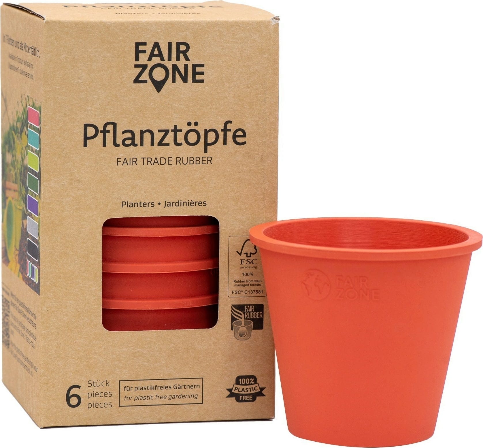 FAIR ZONE Natuurrubberen Bloempot, Set van 6, Coral