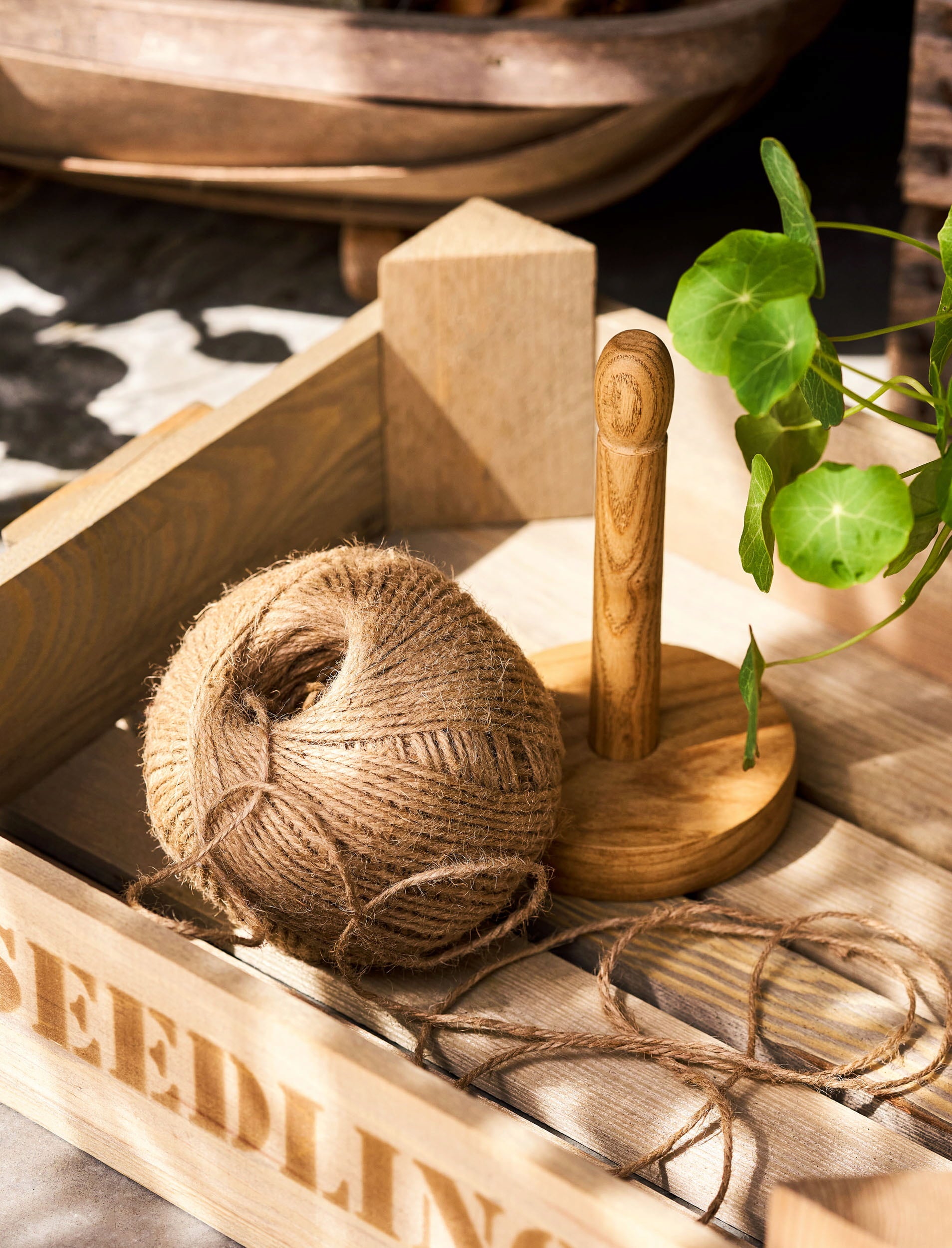 Geen tuinieren zonder degelijk touw! Deze garenhouder met garen is een onmisbare hulp bij het tuinieren en ziet er dankzij het geweldige ontwerp in elk rek goed uit.