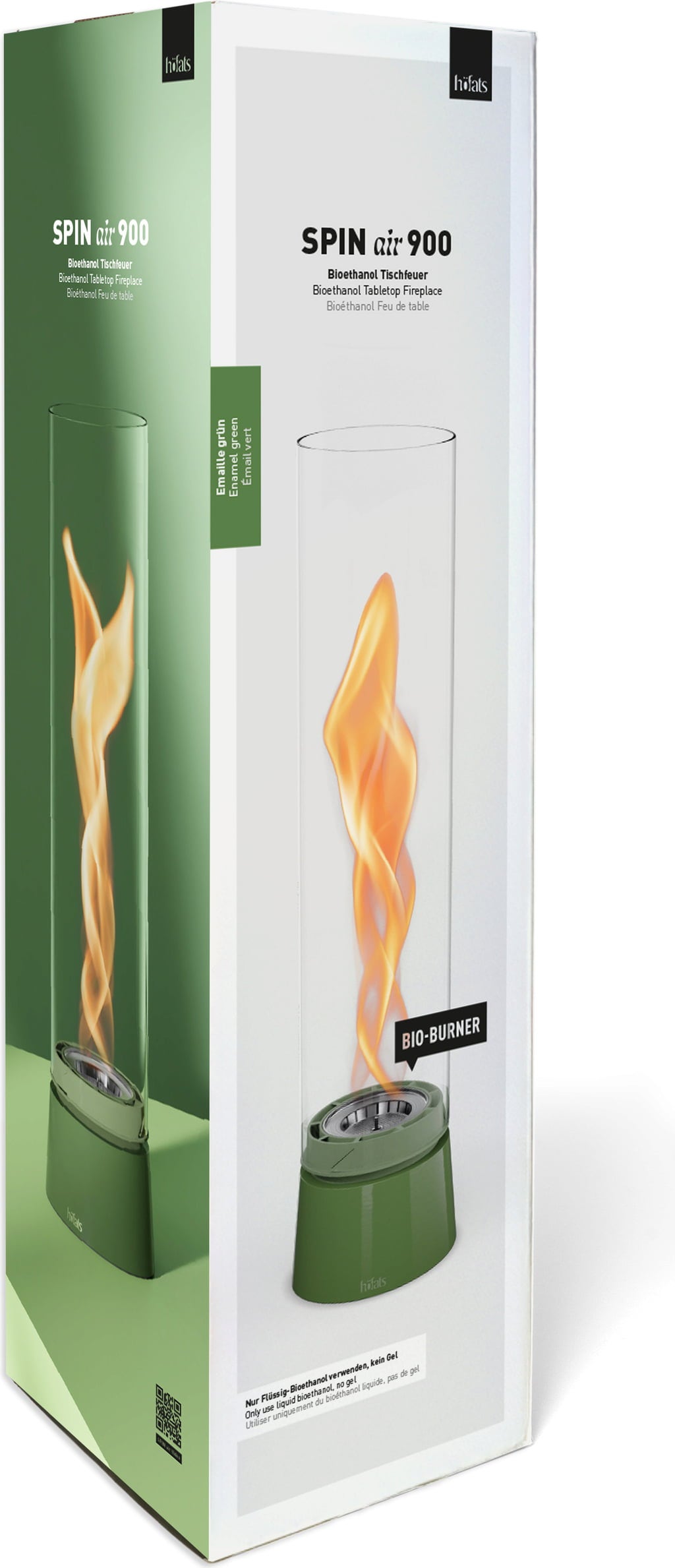 Met de meervoudig bekroonde SPIN air breng je de fascinatie van vuur rechtstreeks naar je tafel in een nieuw, slank silhouet - binnen of buiten. De gepatenteerde Bio-Burner creëert een indrukwekkende vlammendraaikolk die zelfs bij daglicht zichtbaar blijft en tot 1100 W gezellige warmte uitstraalt.