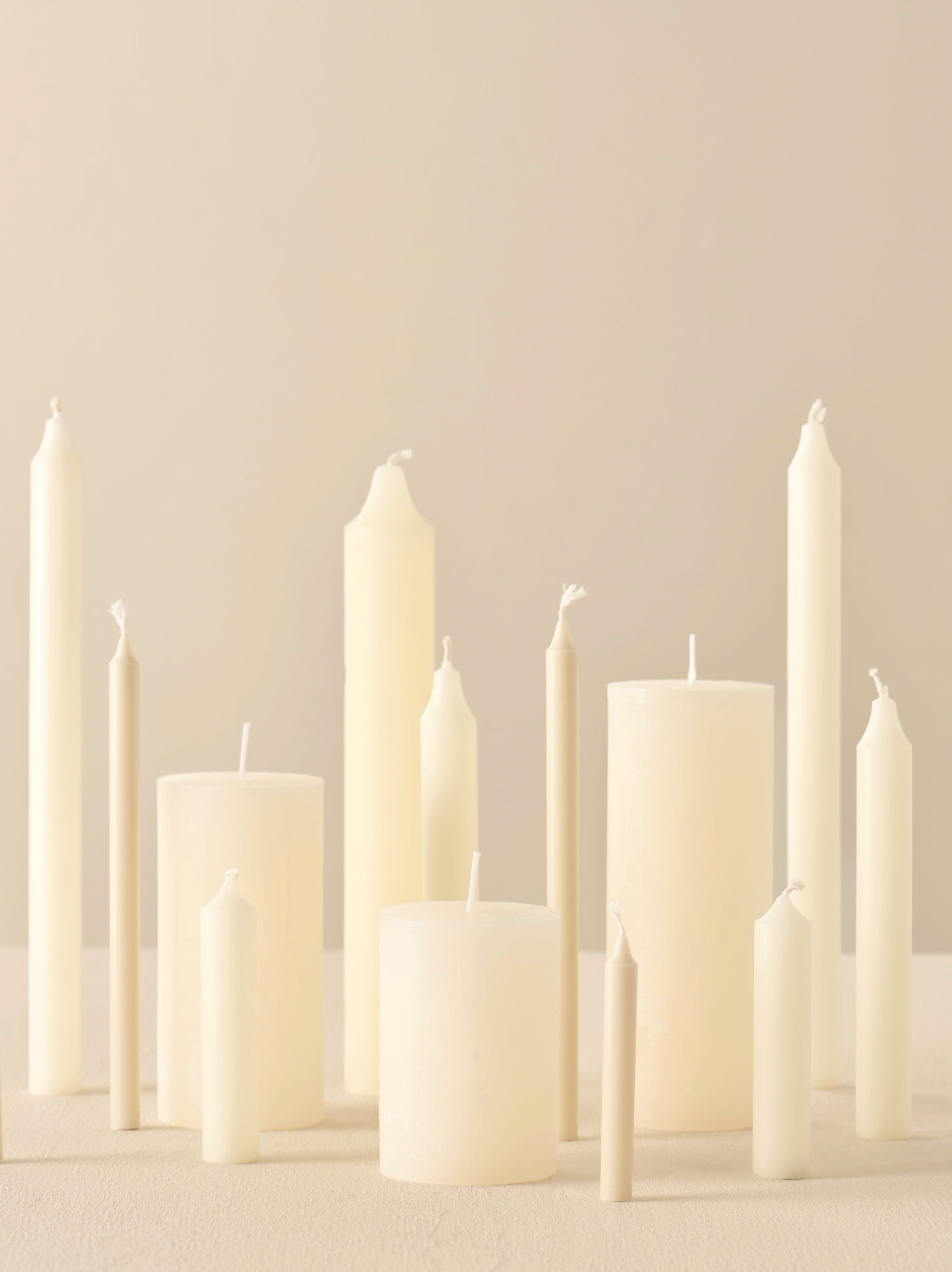 Een lange en elegante dinerkaars die perfect past bij de vele kandelaars van Ib Laursen.