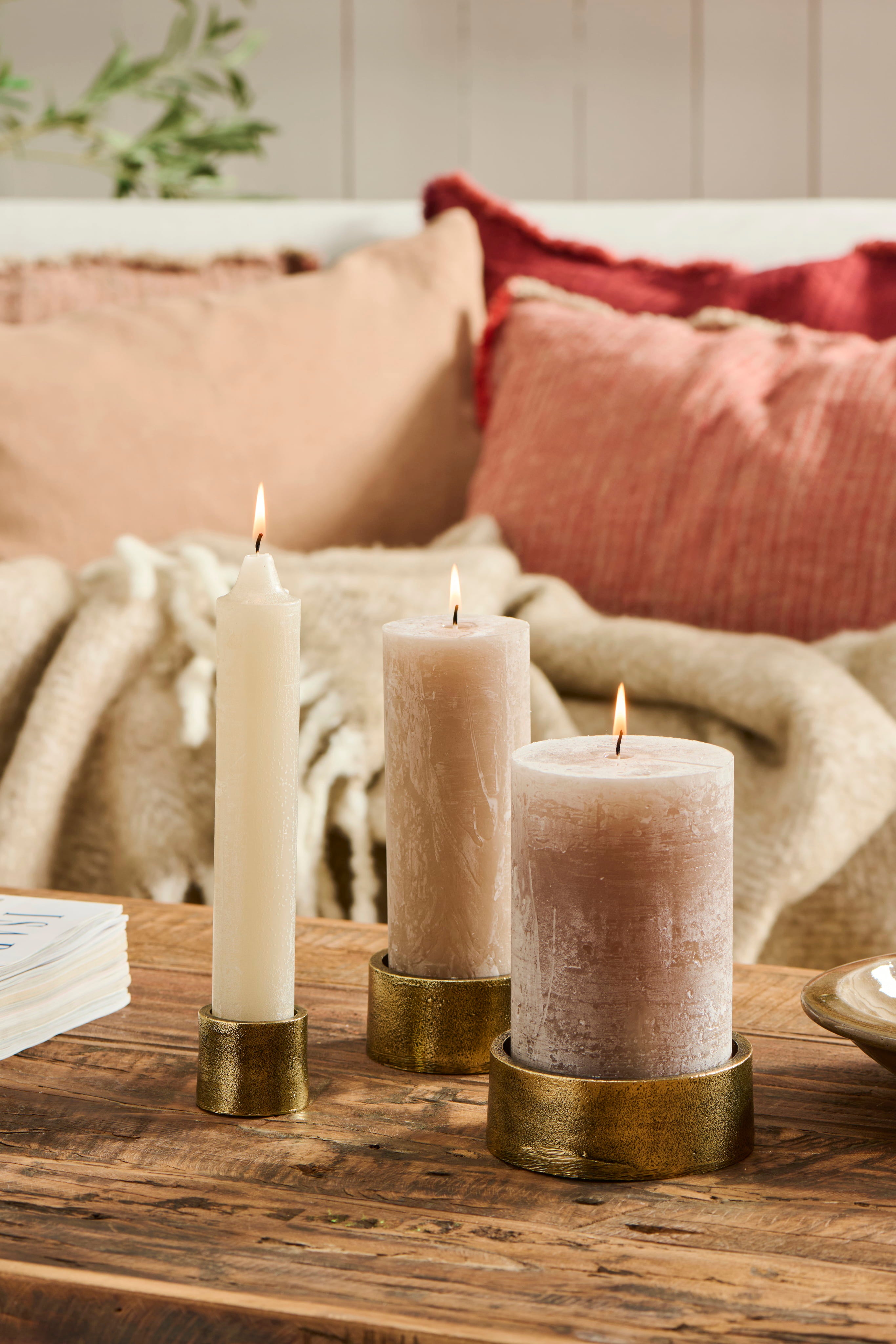 Deze elegante kaarsenhouder valt op door zijn rustieke charme en creëert in een handomdraai een gezellige sfeer in huis.