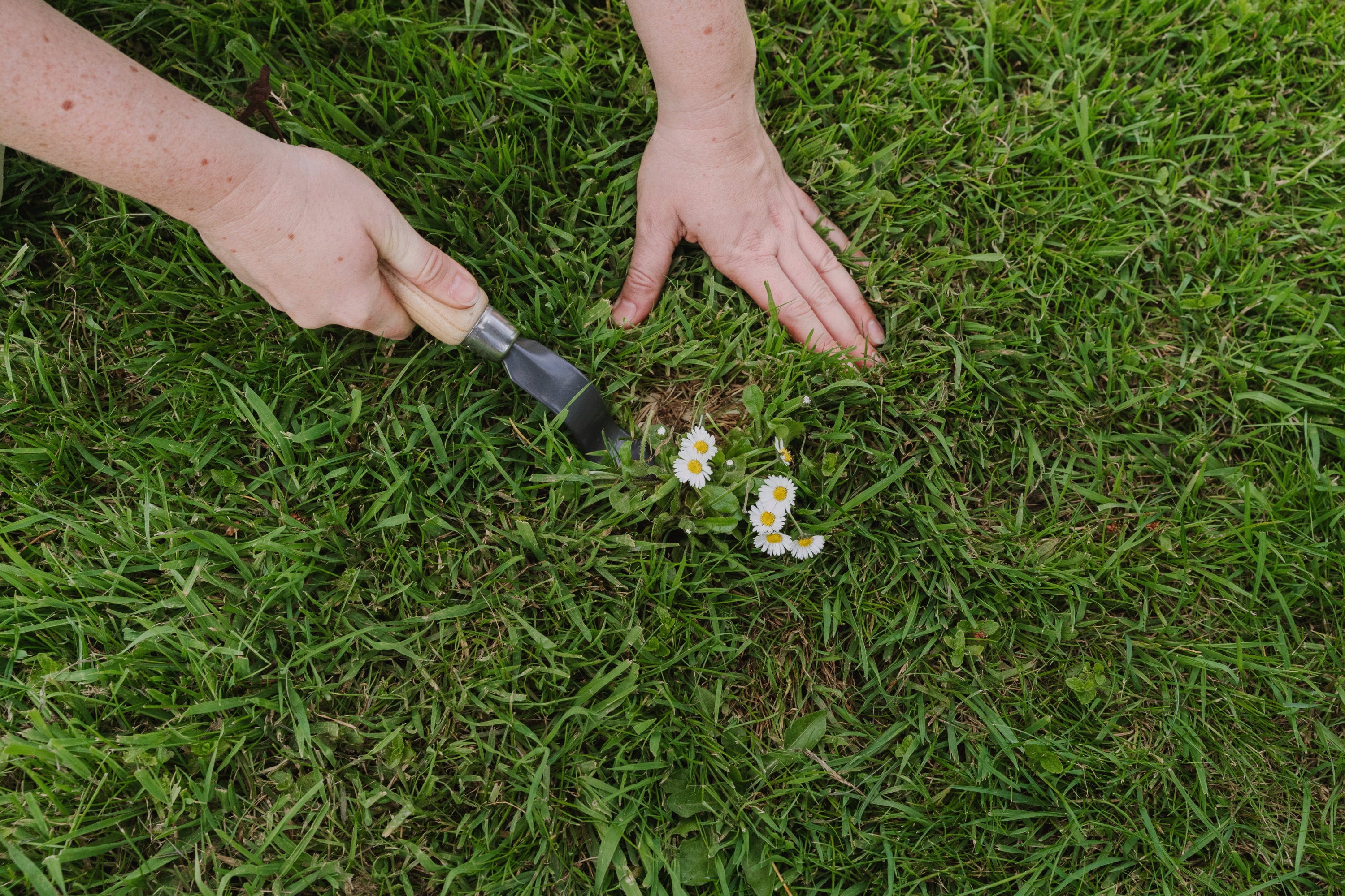 - Het uitsteken van onkruid met diep groeiende penwortels
