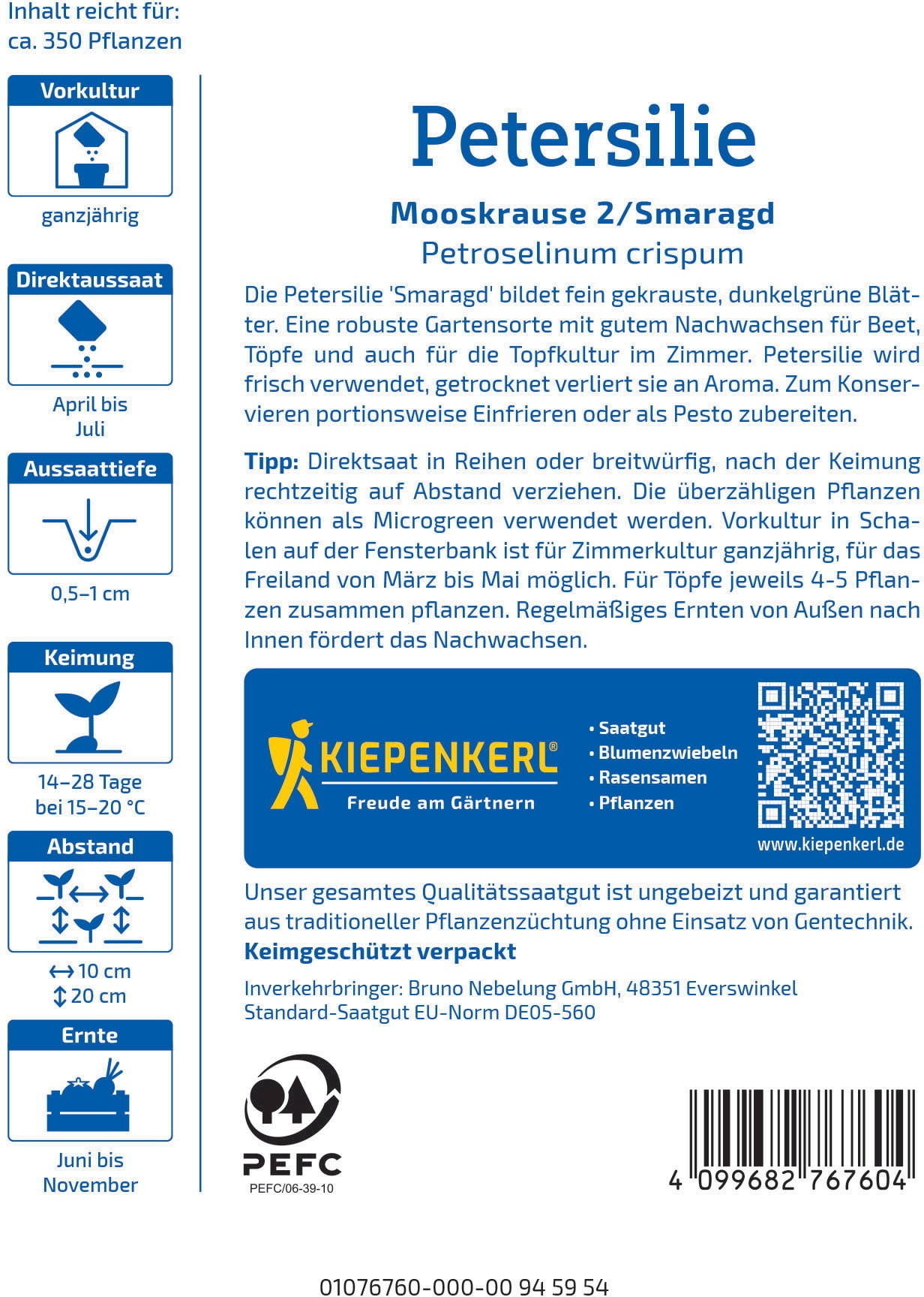 Kiepenkerl Peterselie Mooskrause 2, 350 Korrels