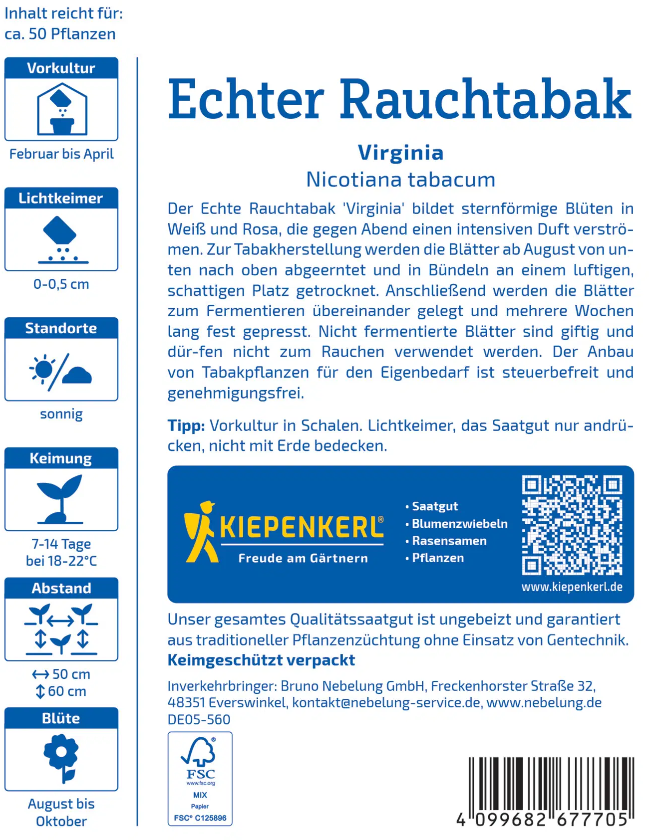 De bladeren van echte rooktabak zijn ideaal voor het maken van je eigen sigaren en sigaretten. De plant is echter ook geschikt als decoratief element in de tuin of in potten en verrast met zijn zoetgeurende bloemen.