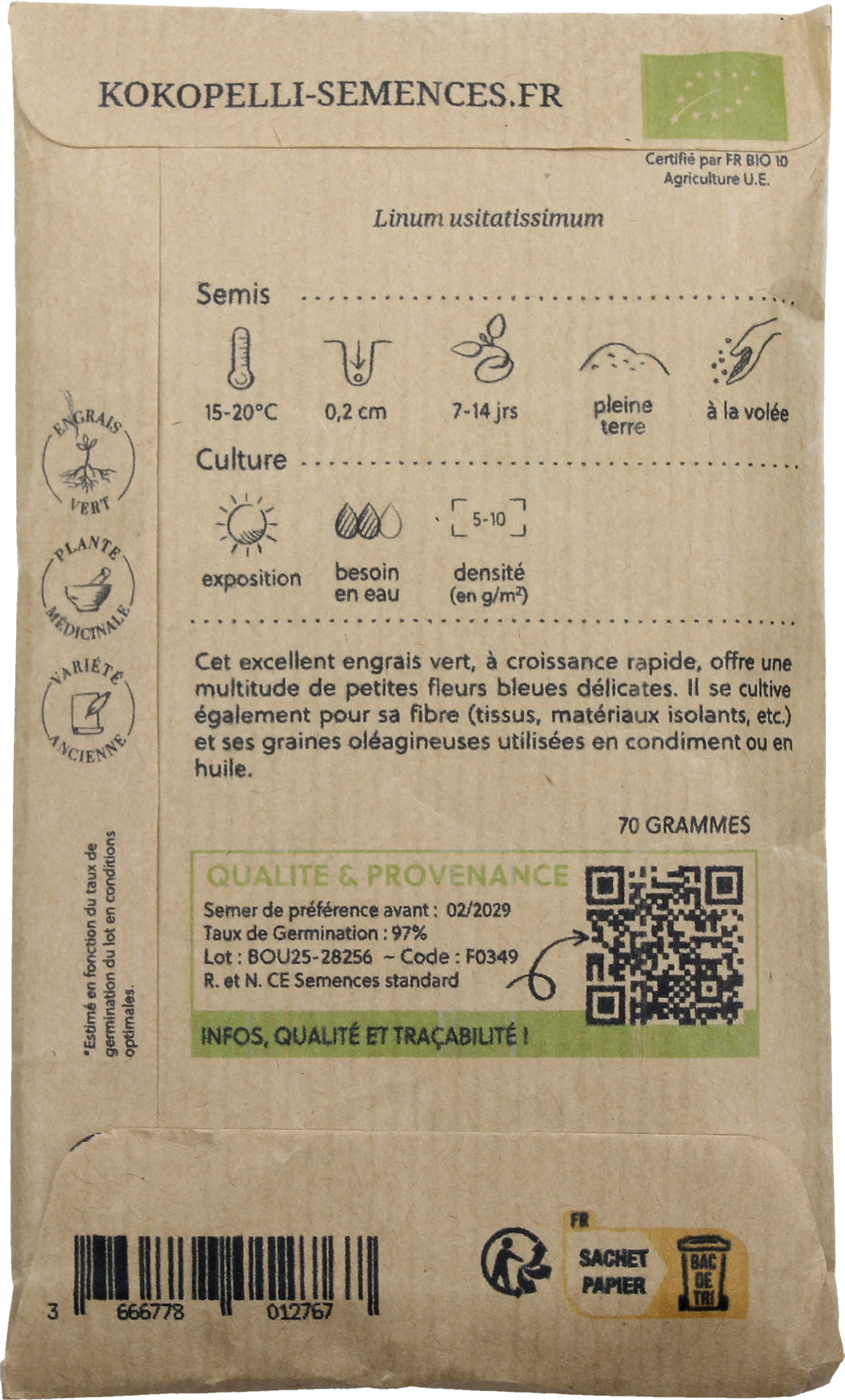 Kokopelli Biologische Blauwe Vlas, 70 g