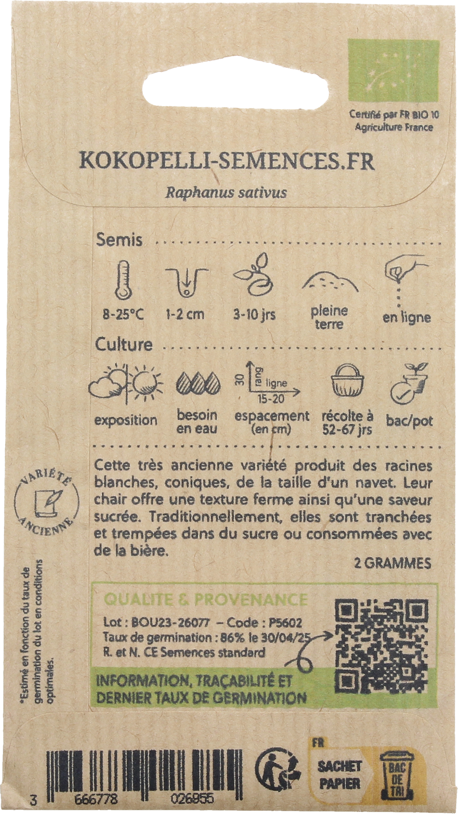 Kokopelli Biologische Tuinradijs "German Beer", 2 g