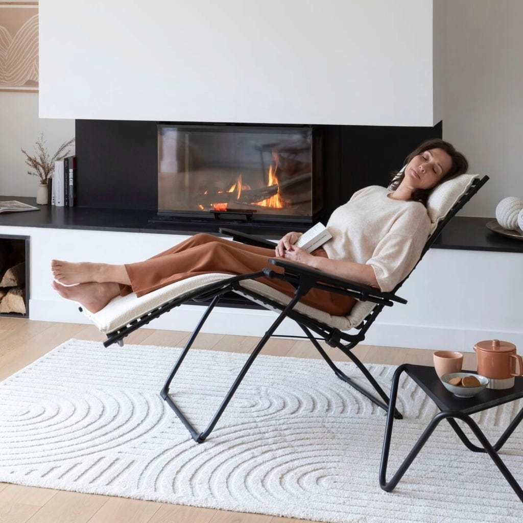 Gun jezelf de ultieme plek om tot rust te komen met deze buitengewone relaxfauteuil EVOLUTION Niksen van Lafuma, waarin modern design en maximale ontspanning samenkomen. Dankzij de ergonomische Zero Gravity-positie liggen je benen iets hoger dan je hart, wat je een onvergelijkbaar licht gevoel geeft. Ook langere personen tot 180 cm genieten in deze stoel van volledig comfort.