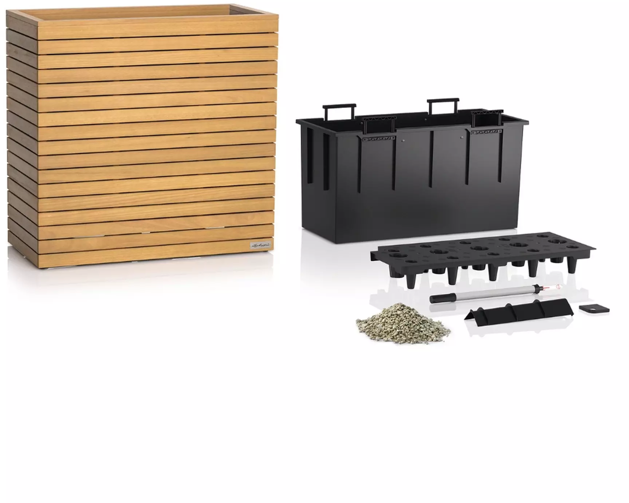Het uitneembare planteninzetstuk van gerecycled kunststof met uittrekbare handgrepen maakt planten en verzorgen zer eenvoudig. Tegelijkertijd zorgt het beproefde LECHUZA-irrigatiesysteem voor een optimale watervoorziening voor uw planten.