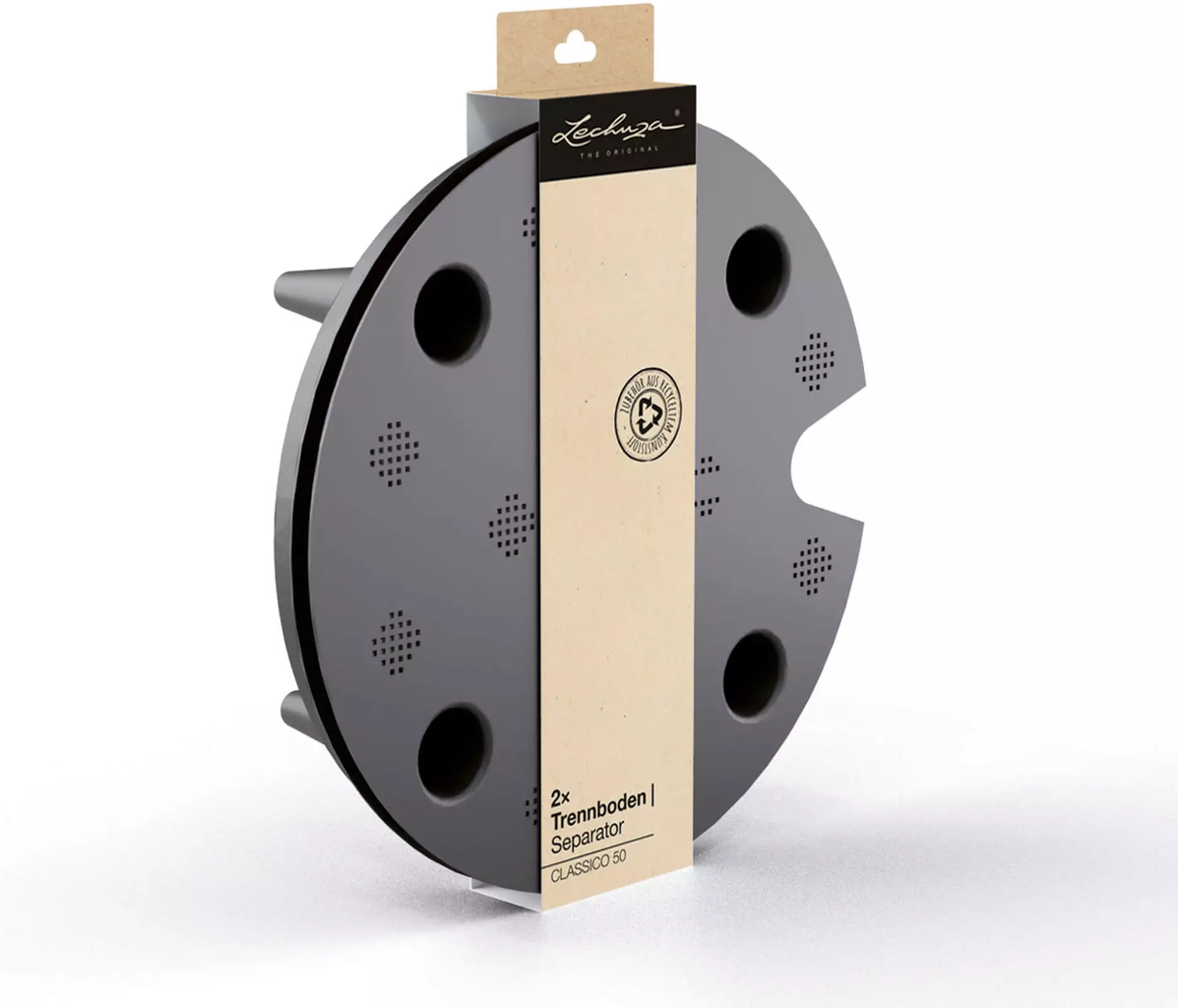 De Lechuza scheidingsbodem wordt eenvoudig in de plantenbak gestoken en vormt het waterreservoir onderin de plantenbak.