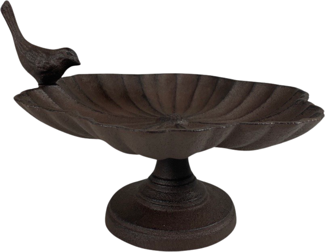 Het vogel- en bloemvriendelijke ontwerp maakt van het Vogelbad Bloem een echte blikvanger! Het is gemaakt van gietijzer, weerbestendig en ideaal voor in de tuin, op het balkon of terras. De antiekbruine look past harmonieus in de natuurlijke omgeving.