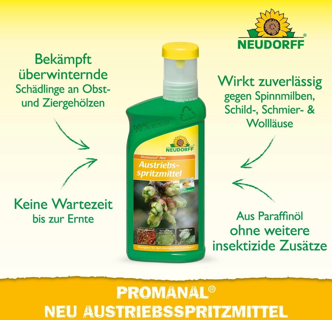 Bescherm je planten al vroeg in het jaar tegen ongedierte – eenvoudig, veilig en milieuvriendelijk! Spuit het concentraat op fruitbomen en siergewassen voordat de knoppen uitlopen, zodat de wintereitjes van de plagen direct met een beschermend laagje worden bedekt.