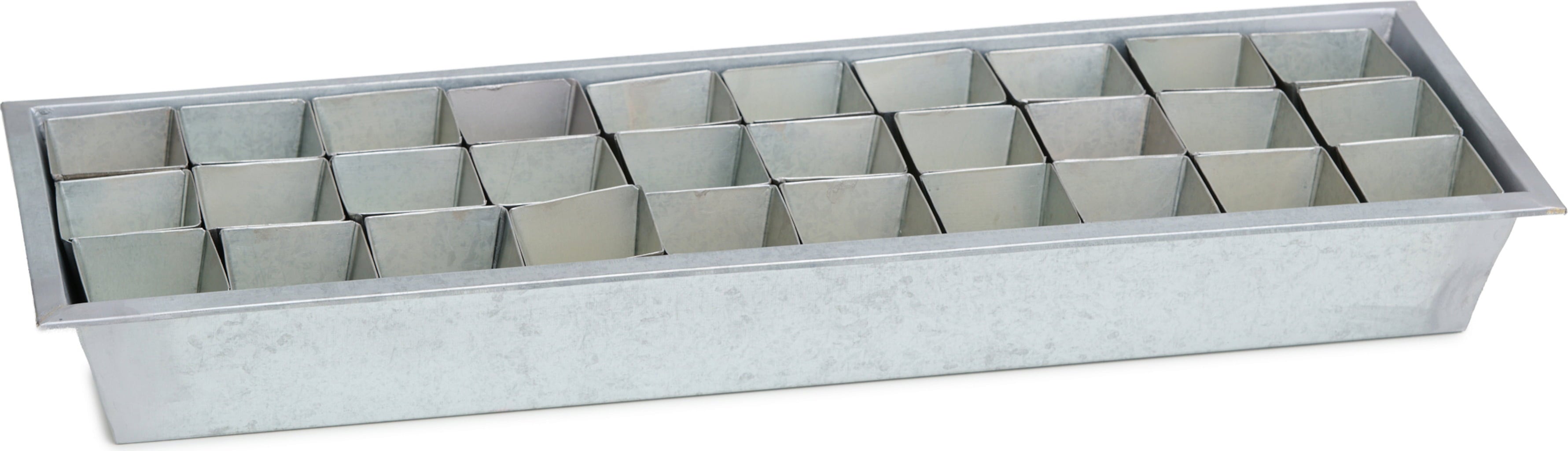De Romberg metalen kweekset bevat een gegalvaniseerde kweekbak en 30 herbruikbare metalen potjes - ideaal voor het gestructureerd kweken van groenten, kruiden en bloemen. Dankzij de conische vorm van de potten kunnen de plantenbollen gemakkelijk worden verwijderd, waardoor verpotten bijzonder eenvoudig is. Duurzaam en perfect voor hobbytuiniers die houden van orde en succes bij het kweken van planten.