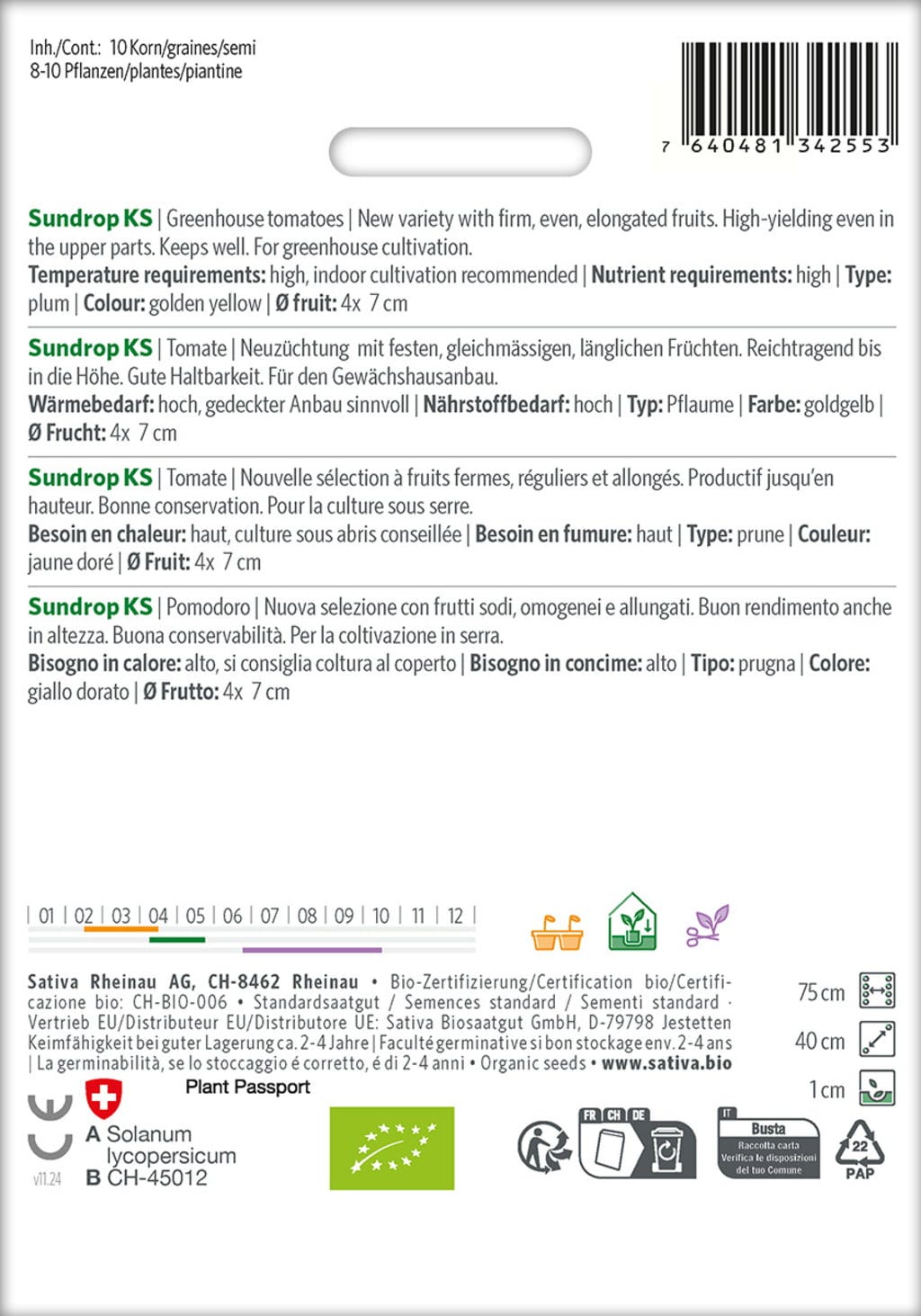 | Fabrikant: | Sativa Biosaatgut GmbH, Keltenweg 4, 79798 , Jestetten, Oostenrijk, sativa@sativa.bio, www.sativa.bio |