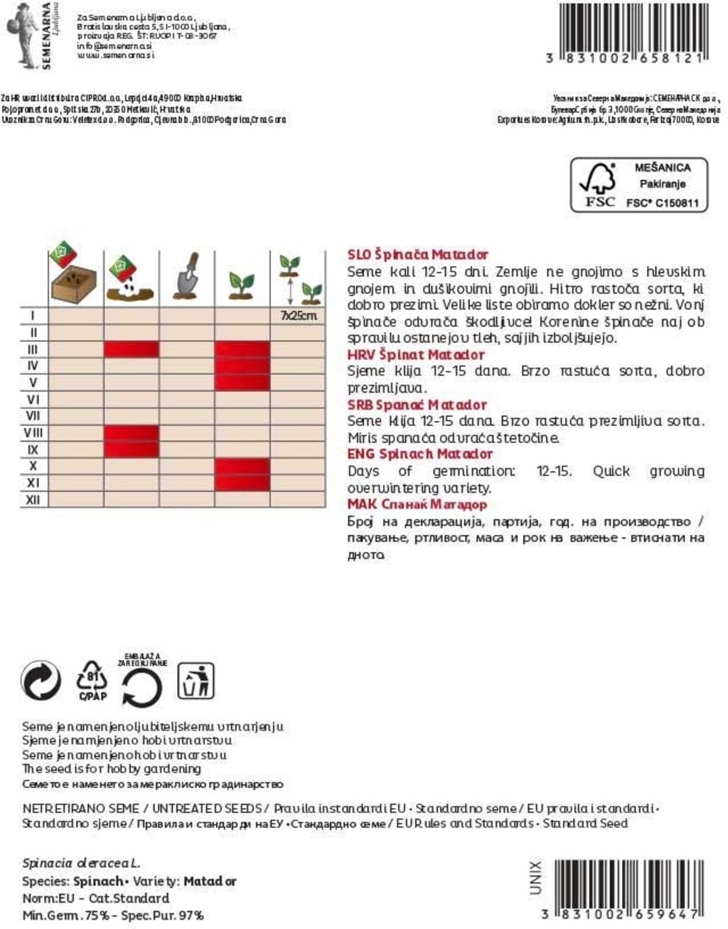 recensies in Nederlands voor Semenarna Ljubljana Spinaziezaden "Matador"