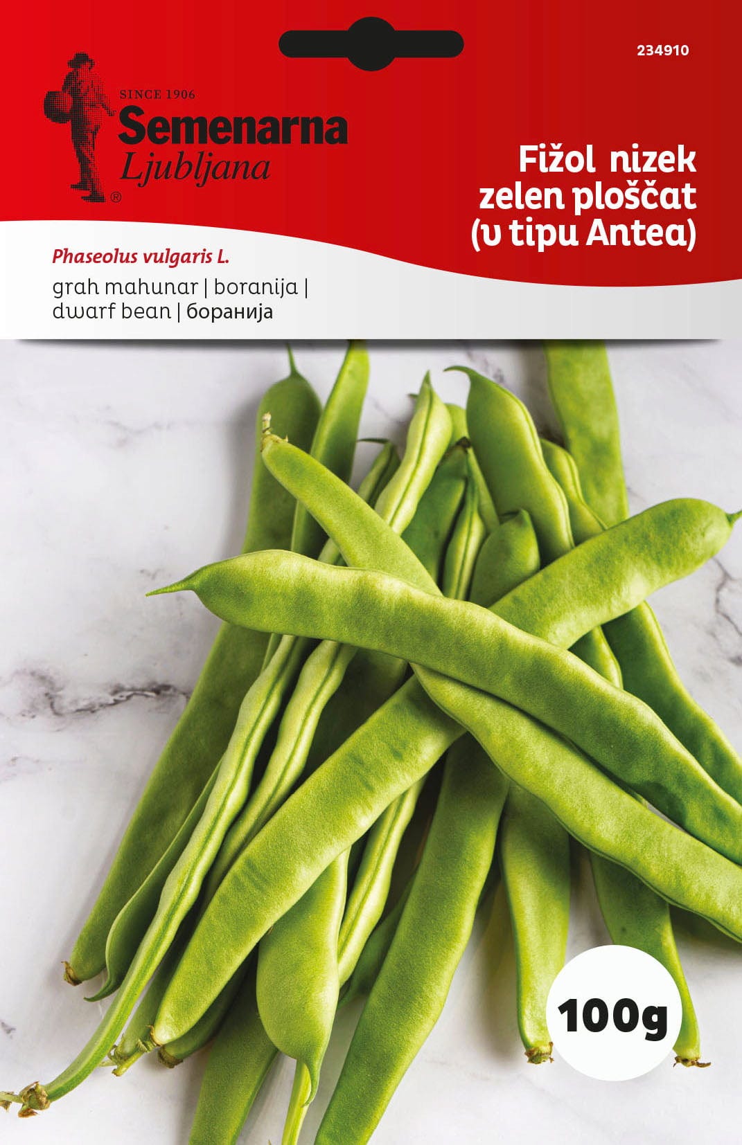 Deze laagblijvende, vroege soort vormt groene, platte peulen.