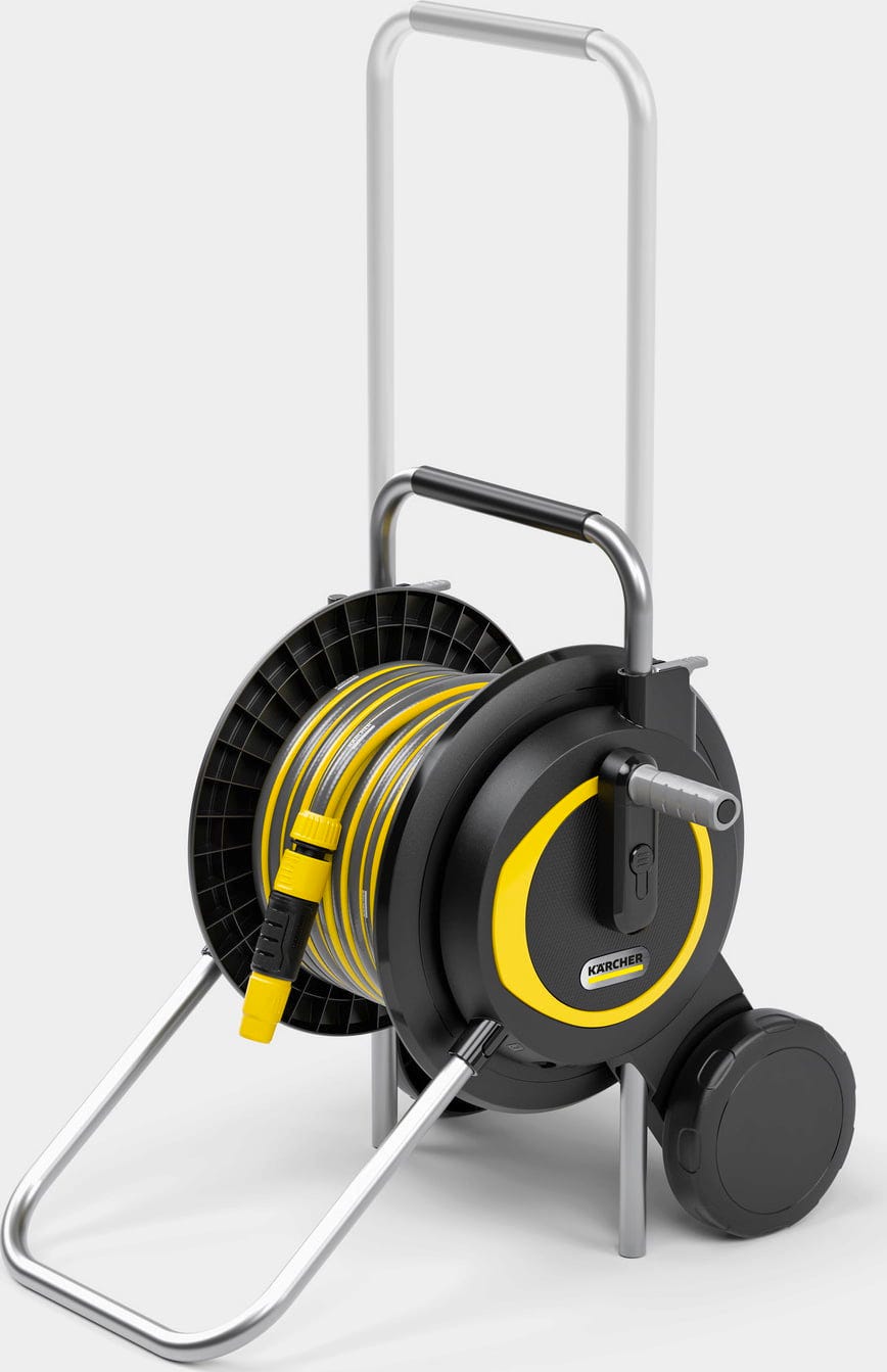 Met de ergonomische zwengel kan de slang snel en gecontroleerd worden opgerold. De stabiele standvoet zorgt voor dat de haspel stevig staat. De in hoogte verstelbare handgreep vergemakkelijkt tevens het transport in de tuin en zorgt voor een comfortabele hantering.