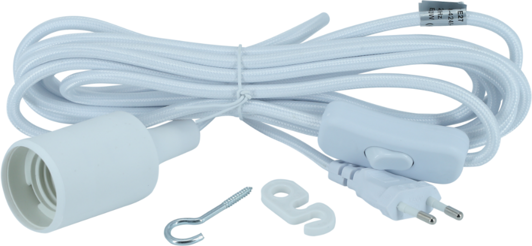 Venso E27 Fitting met 4m Textielsnoer, Wit