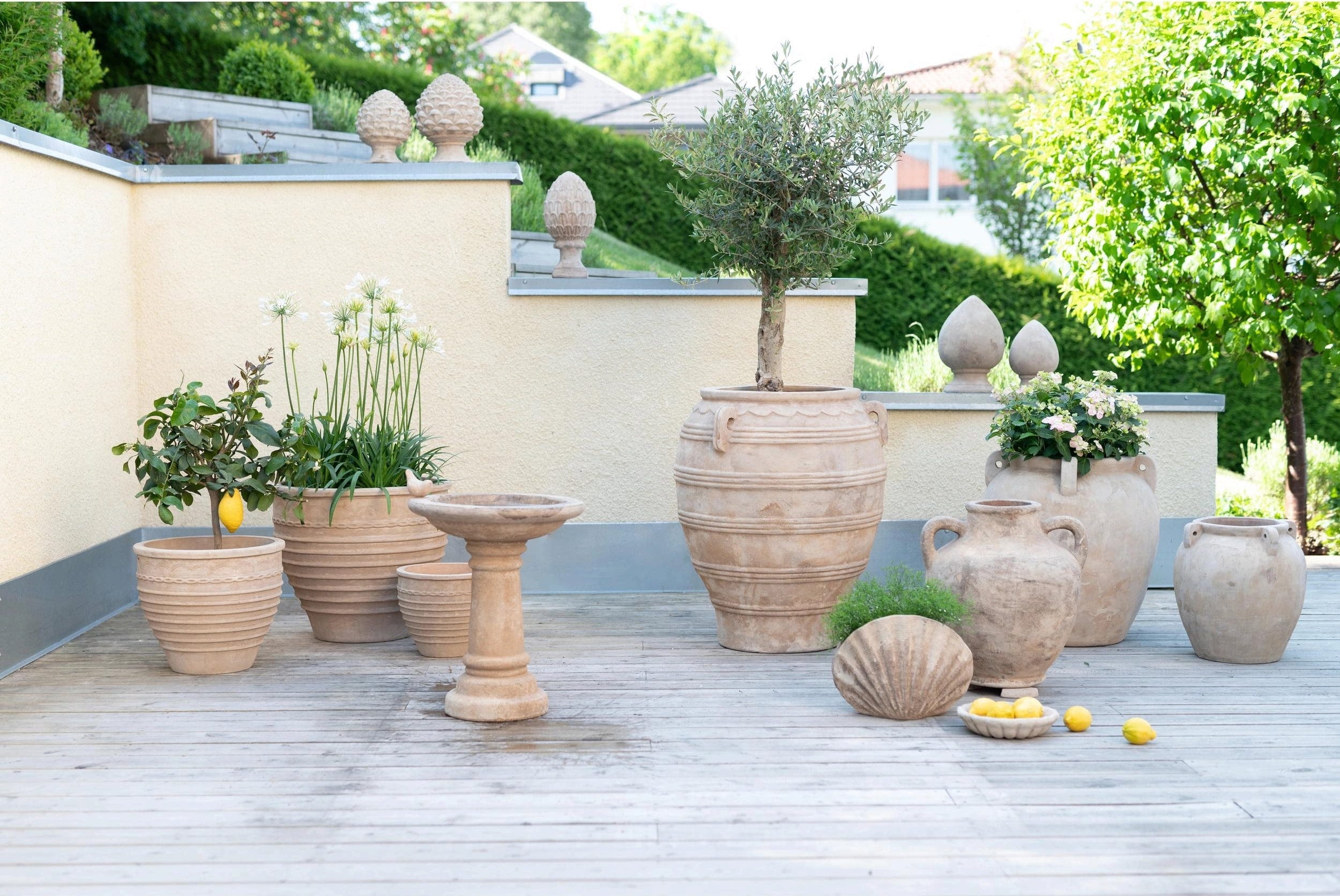 Deze mooie schelpenvaas van hoogwaardig terracotta brengt een maritieme flair in huis en verandert je tuin, terras of balkon in een mediterrane oase.